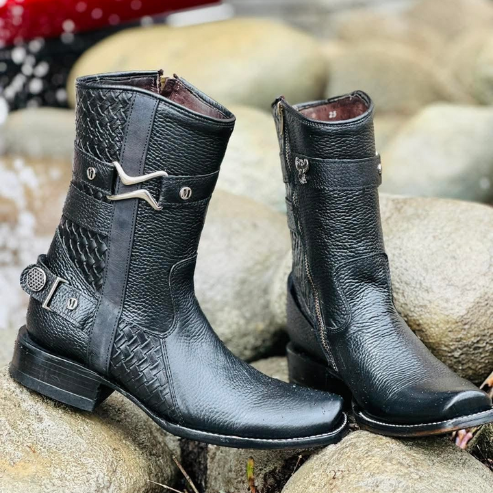 Diseño robusto con aplicaciones metálicas y trenzado en piel. Inspiración vaquera con actitud urbana.